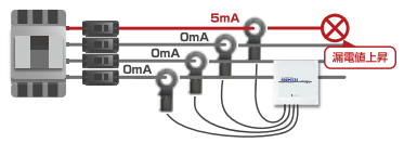 - アクセスが困難な場所の監視:人が容易に調査できない場所でも、遠隔から漏れ電流を長期間にわたり計測できます。