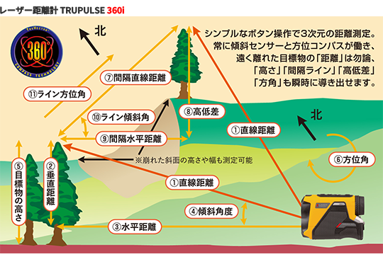 | 林業・森林管理 | 樹高や離隔距離、傾斜を含む測定に対応し、森林管理の基本業務をサポートします。 |
